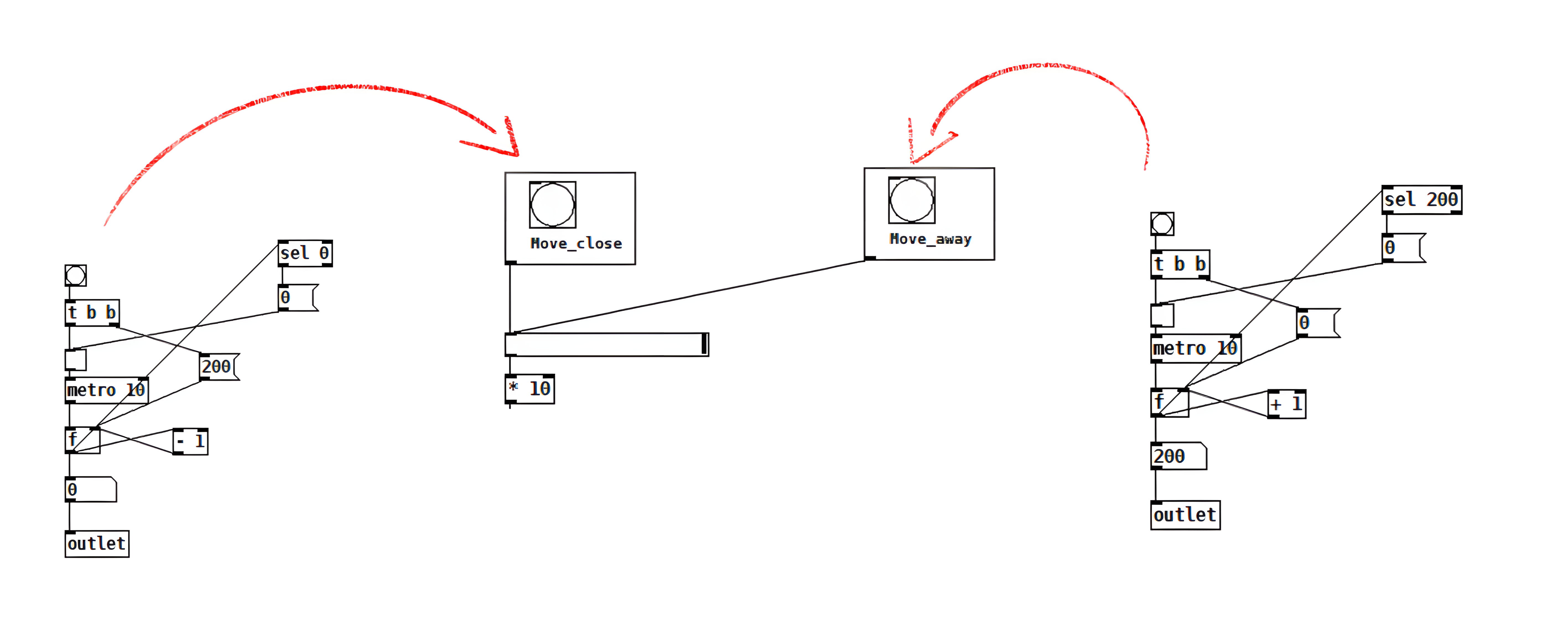 I’ve also added buttons to move close or move away from the listener. They’re basically counters that will control the movement of the slider up or down and I’m using a canvas to keep it cleaner. I’ll leave a link to the patch in the references section.